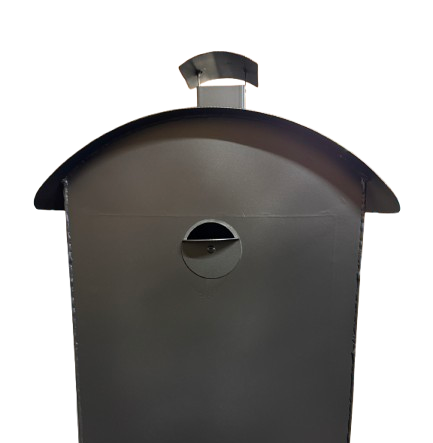 Korpus kvaliteetsest 2mm rauast, küttekolle 6mm rauast, topeltseintega kuumsuitsuahi. Kahekambriline. Küte ei puutu kokku toiduga ja saab kasutada mistahes puitu. Suits eraldi lihakambrist, mistahes suuruses lehtpuu laastuga.