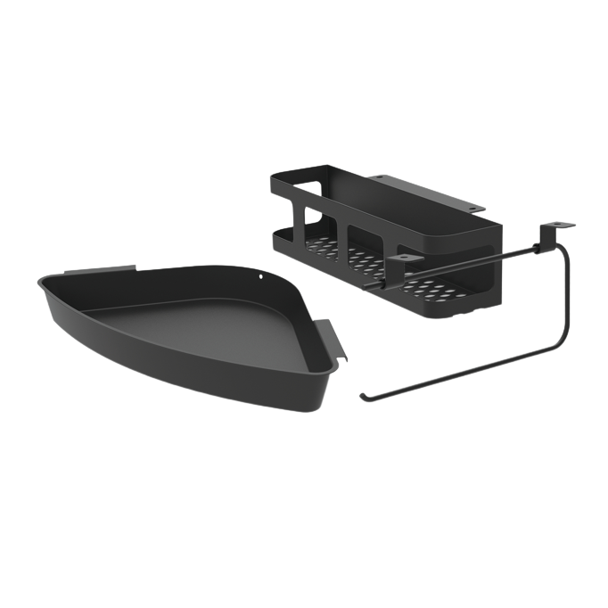 Kuidas tunned ära kogenud Big Green Eggi kasutaja? Hästi organiseeritud töökoha järgi. 3-osaline lisatarvikute komplekt hoiab kõik töövahendid käepärast… Paiguta tööriistad ja maitseained hoiuriiulile, köögipaber pane rätikuhoidjasse, tuhk läheb prügikasti… Kõik on puhas ja korras!
