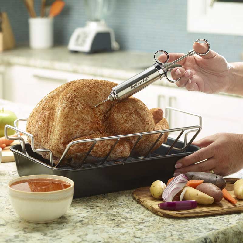 Big Green Eggi ainulaadne marinaadisüstal on suurepärane vahend, mille abil saad veise- ja linnulihale maitset lisada. Marinaadisüstla abil tungib marinaad kindlasti sügavale liha sisse, muutes selle veel mahlasemaks ja õrnemaks. Seda ongi ju vaja.