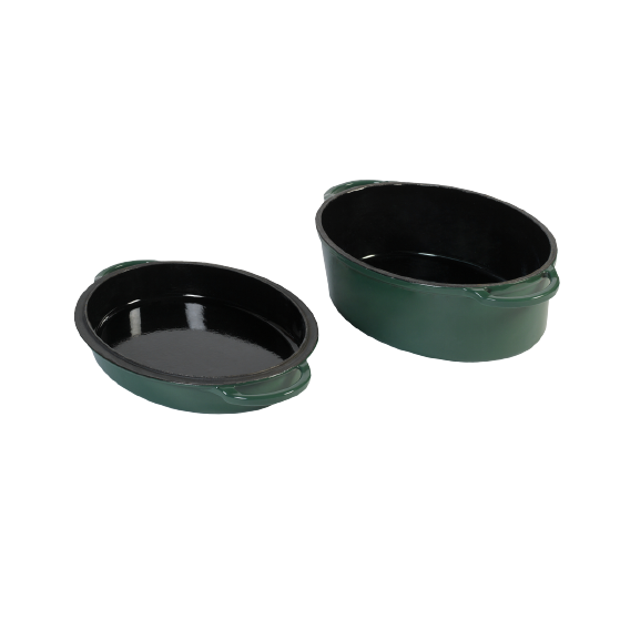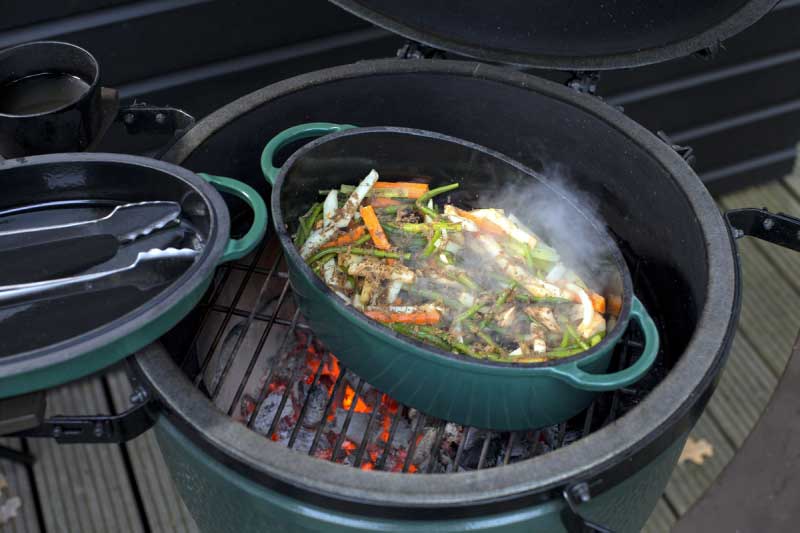 Big Green Eggi roheline haudepott on päris raske tegelane. See emailitud malmist haudepott hautab, moorib, keedab, küpsetab ja röstib. Üsna universaalne! Rohelise haudepoti kaant saab kasutada ka eraldi, näiteks madala praepannina ja isegi koogi- või magustoiduvormina. Ovaalse haudepoti maht on 5,2 liitrit.