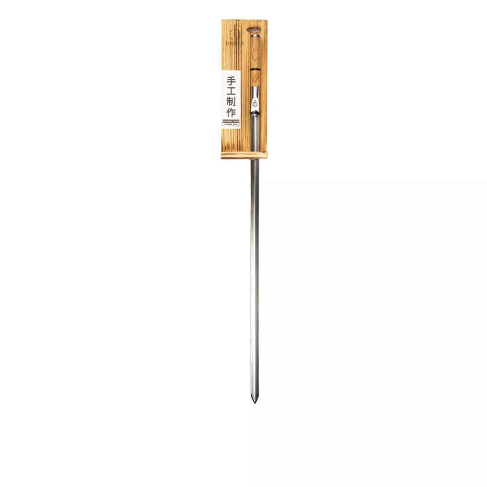 60 cm pikkune V-kujuline varras on valmistatud kvaliteetsest terasest koos oliivipuust käepidemega, mis on ümar-ovaalse kujuga ja väga mugav käes hoida. Teravate otste abil saab lihtsalt liha, köögivilju või puuvilju vardale lükkida, ning V-kuju tagab, et toit püsib kindlalt paigal grillimise ja serveerimise ajal. Churrasco stiil, mis pärineb Brasiilia kauboide ajast, võimaldab Forged Churrasco sarja kaudu seda kogemust kodus nautida.