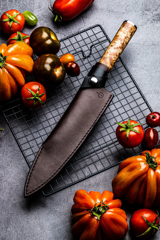Nahast ümbris Leather Forged Chef on mõeldud STYLE DE VIE universaalsetele peakoka nugadele kollektsioonidest OLIVE Forged, VG10 Forged, INTENSE Forged ja BRUTE Forged.