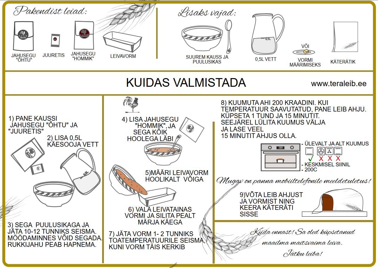 Koostisosad: täistera rukkijahu, nisujahu, mitme vilja segu (kooritud päevalilleseemned, maistang, linaseemned, peened kaerahelbed, odralinnase jahu, hirss, suhkur, emulgaator E472e), kanepiseemned 5%, fermenteeritud rukkilinnas, linaseemned, kuivjuuretis (nisutäisterajahu, happesuse regulaator E330, nisugluteen, stabilisaatorid E516, E412; rukkitäisterajahu, glükoos, palmirasv, happesuse regulaator E262, ensüümid (sh nisujahu), rafineerimata roosuhkur, himaalaja sool, kuivpärm.