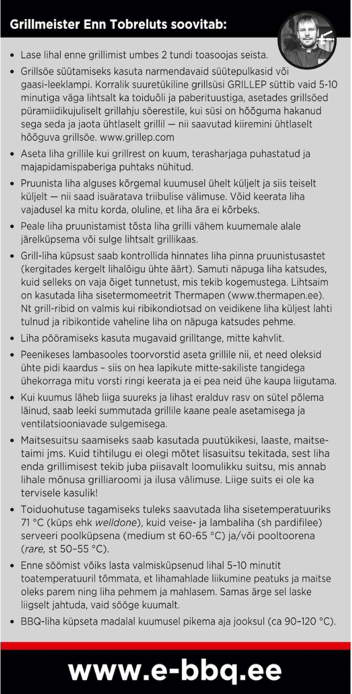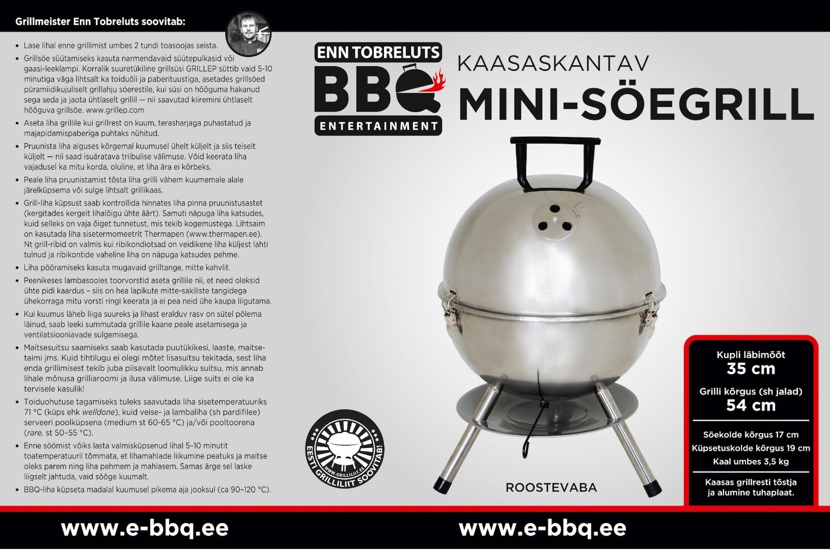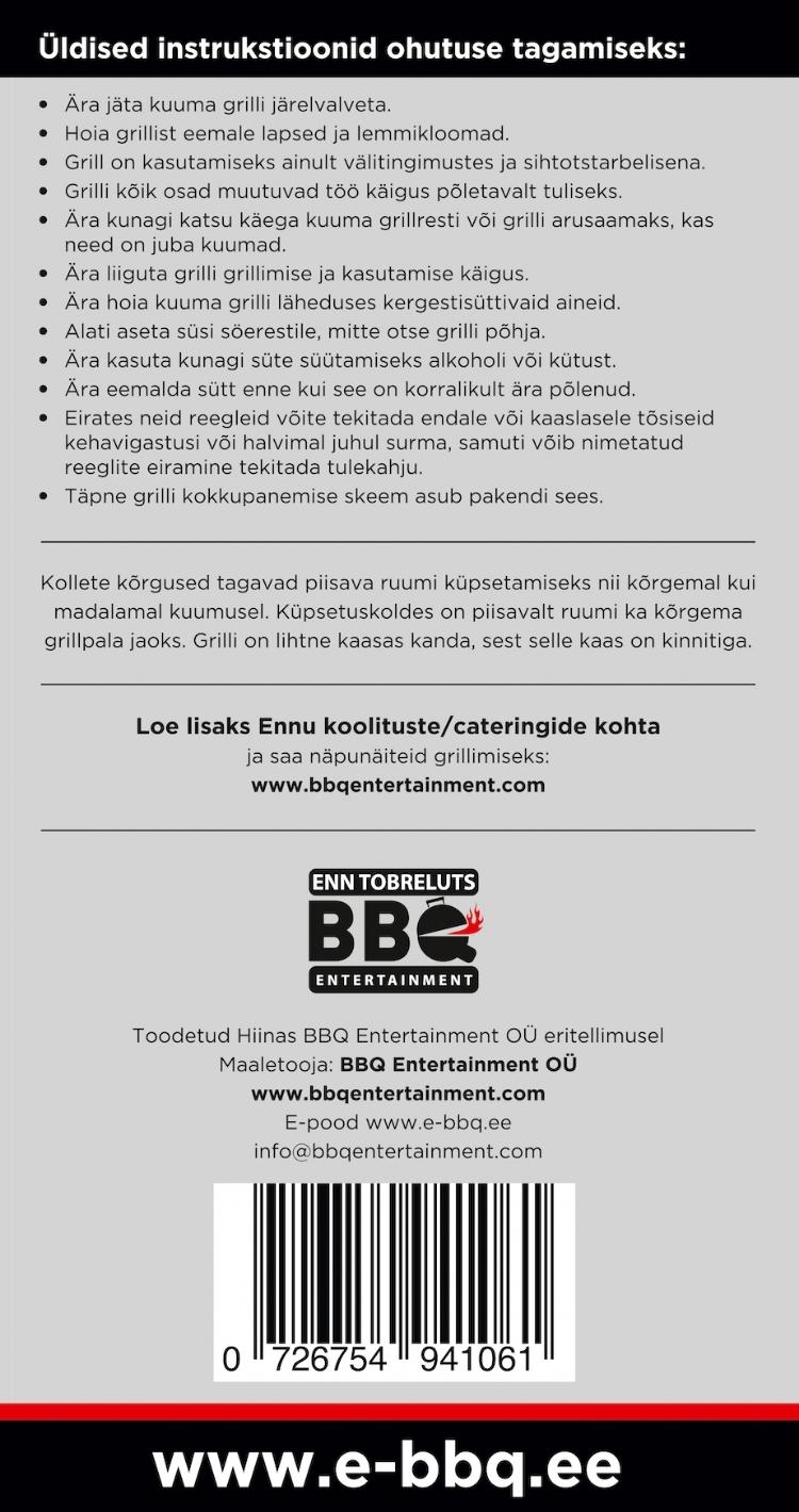 - Pakendil on põhjalikud Enn Tobrelutsu eesti keelsed grillimisõpetused/nipid ja kasutusjuhend.