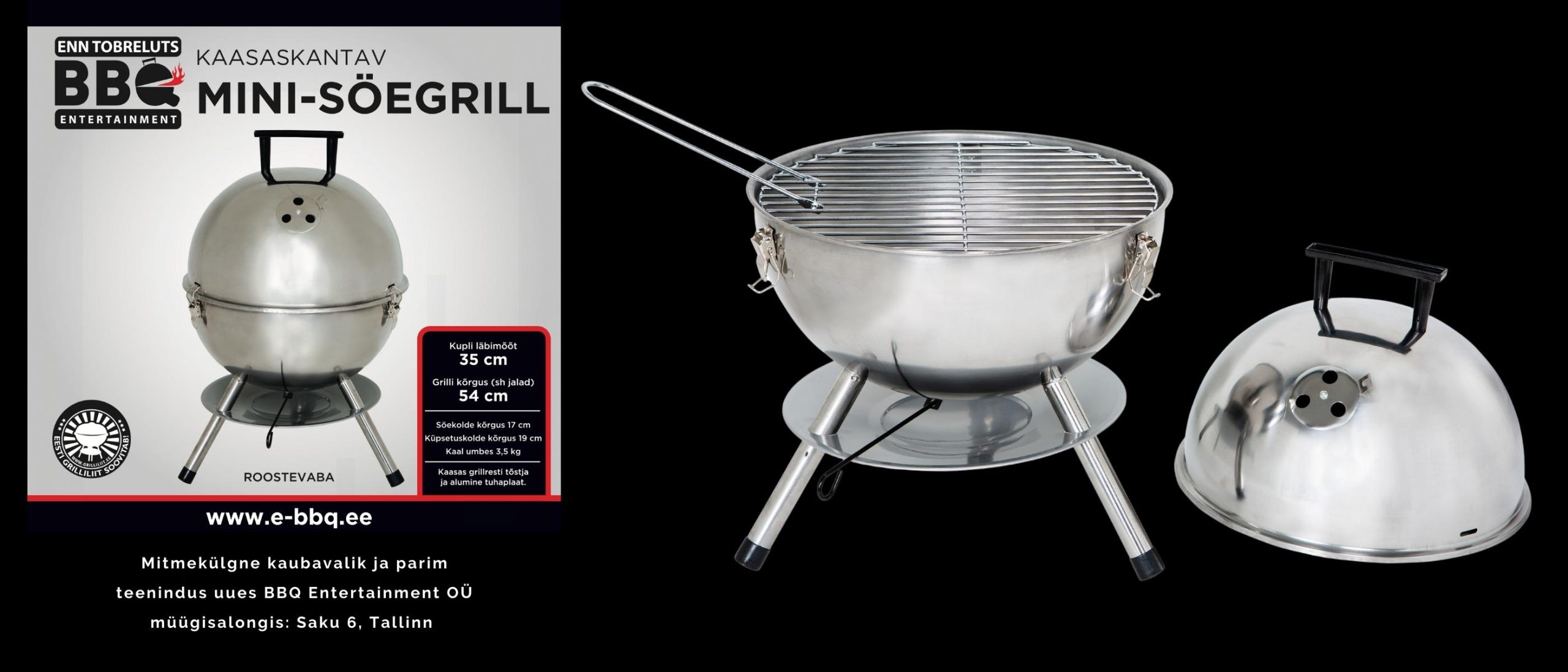 - Paksust & tugevast roostevabast terasest, grillresti, grillrestitõstja ja tuhaplaadiga.