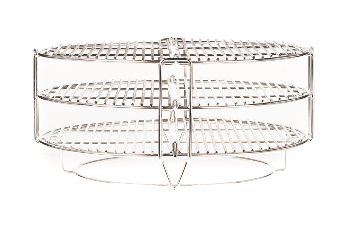 Paindlikku küpsetamist võimaldav neljatasandiline süsteem “Divide & Conquer®”, st sealhulgas 2 tk poolkuu keraamilised soojusdeflektorid (kuumusjagajad) ja 2 tk roostevabaterasest (304) poolkuu-grillresti (läbimõõduga 61 cm) – lisa grillreste saab lisadena juurde osta