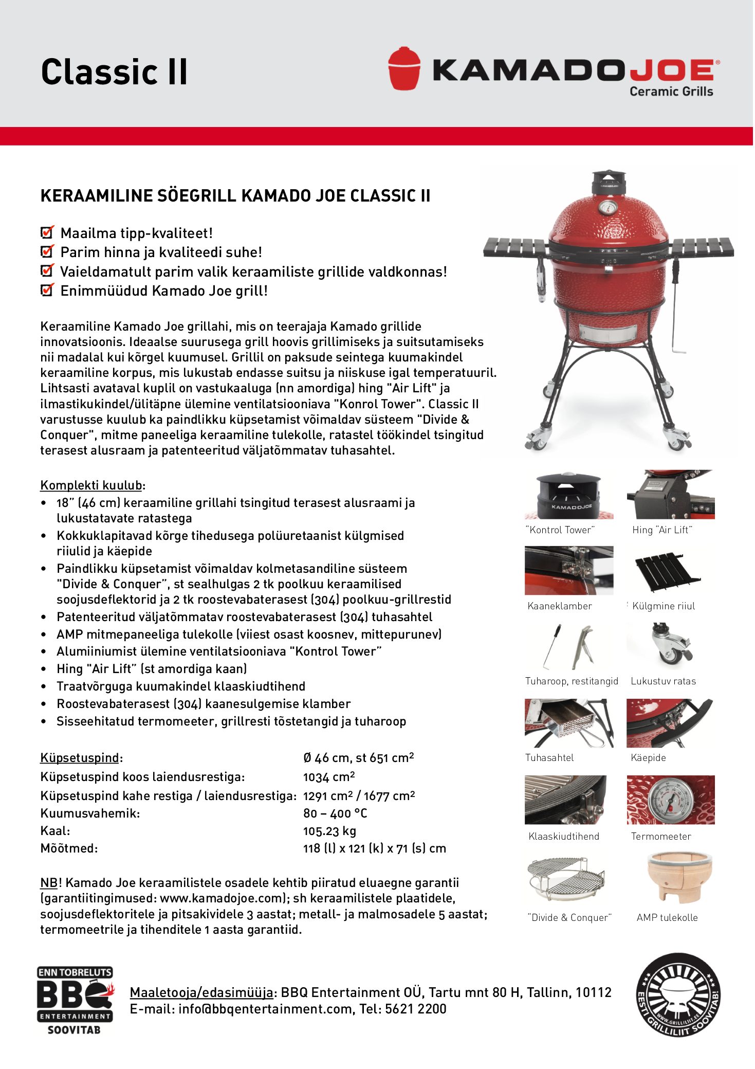 - 1 tk Kamado Joe ® Classic II keraamiline grillahi