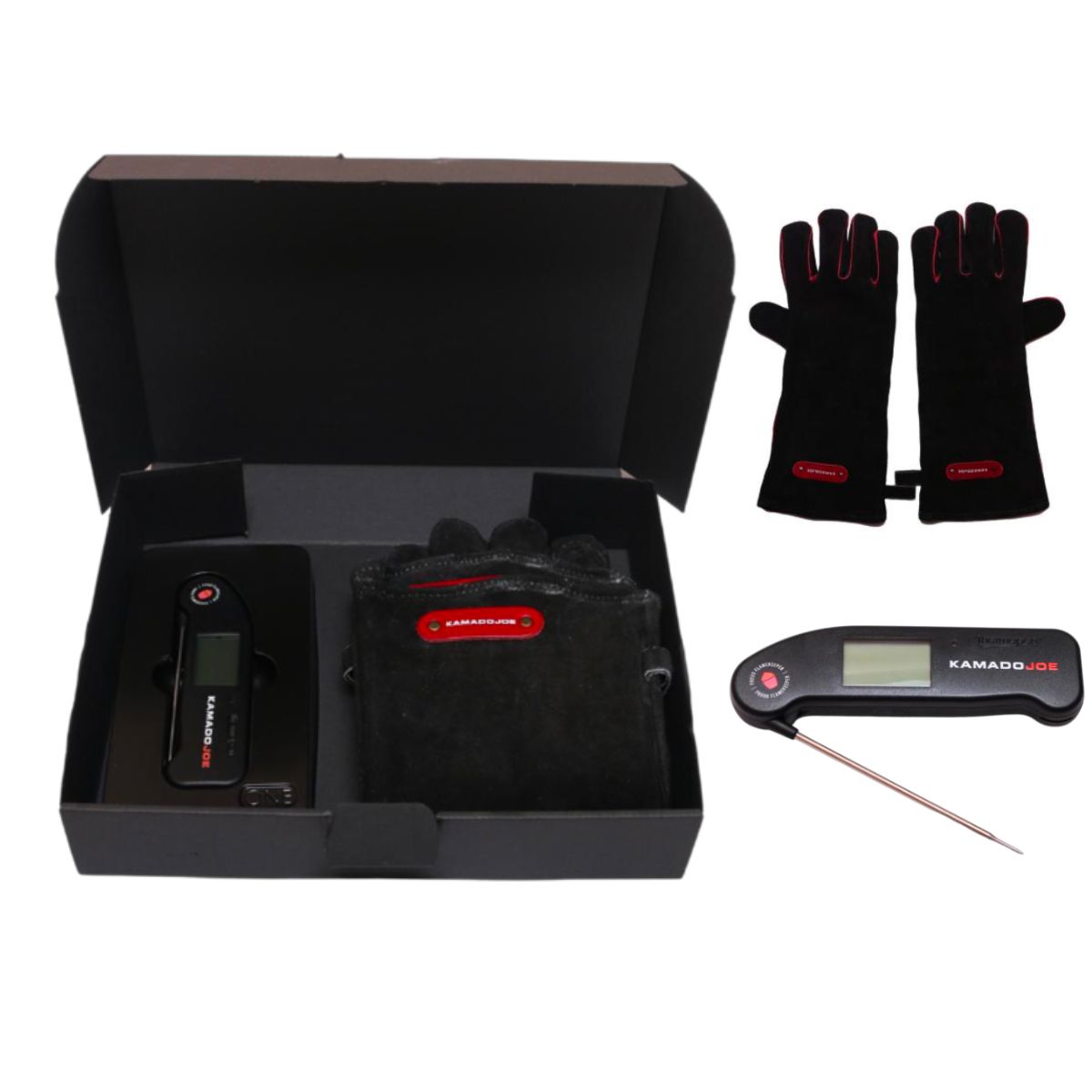 Grillkindad on valmistatud kvaliteetsest nahast ja kaitsevad käsi kõrge kuumuse eest, sobides süte lisamiseks, restide tõstmiseks ja kaane avamiseks. Thermapen One – Kamado Joe Edition on õhukeotsaline digitaalne lihatermomeeter, mis annab näidu peaaegu hetkega ja aitab liha küpsusastet täpselt jälgida.