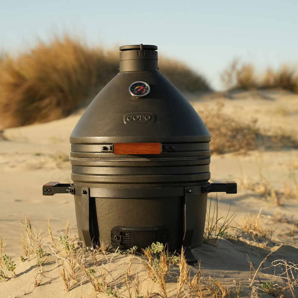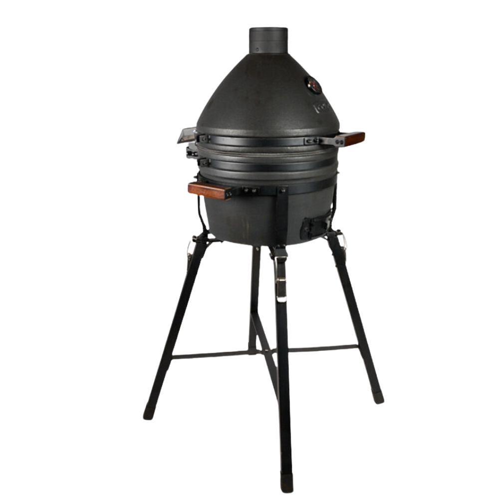 Kompaktne ja mitmekülgne kamado-tüüpi grill sobib kasutamiseks terrassil, aias, väliköögis või ka professionaalses köögis. Tänu tugevale alusele ja kahele tiikpuust käepidemele on grilli lihtne liigutada.