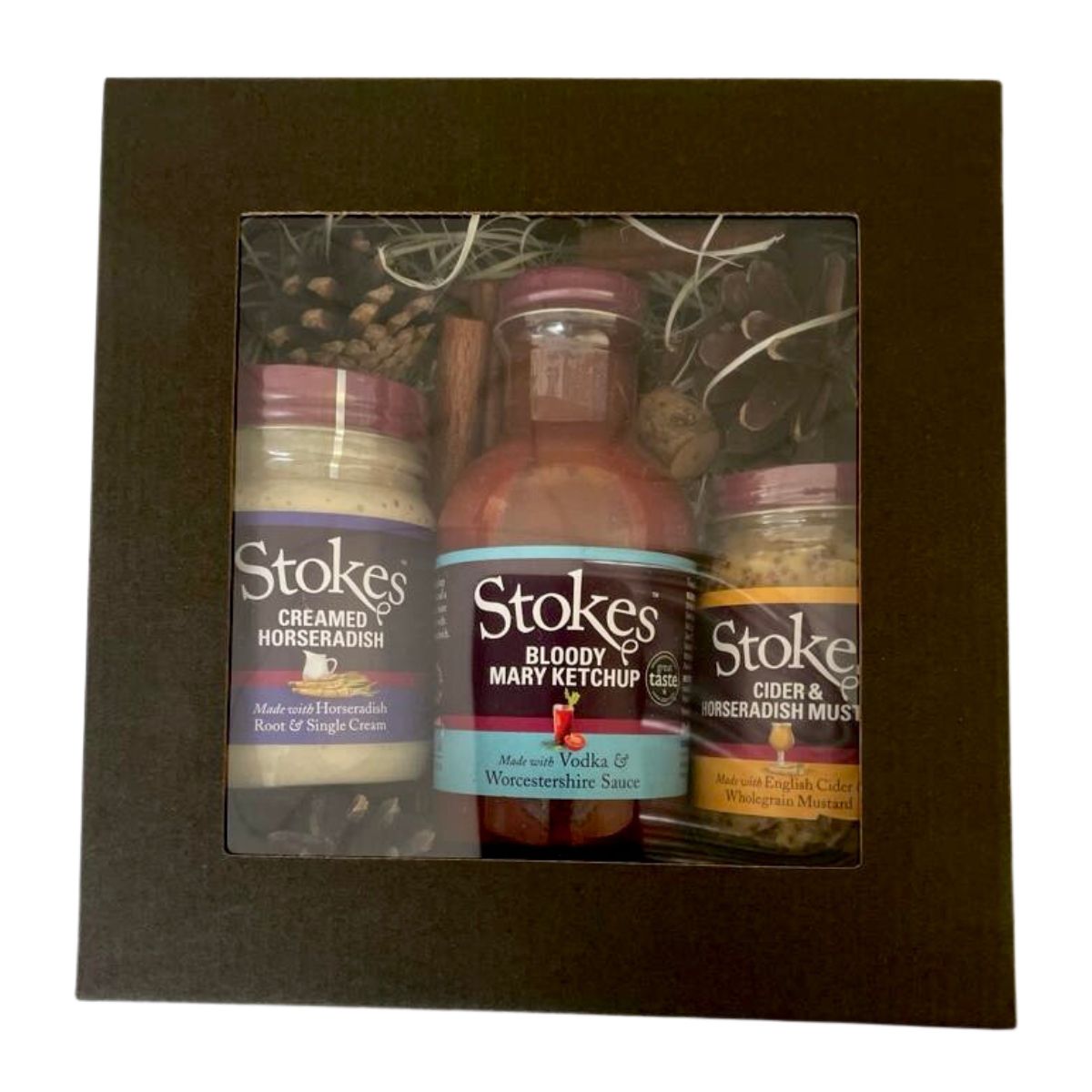 Ilus musta värvi kinkekarp aknaga, kaunistuseks on karbis mõned käbid jms. Kinkepakk sisaldab: