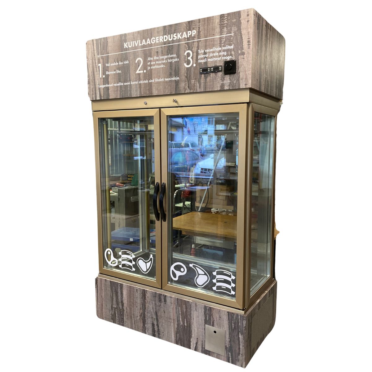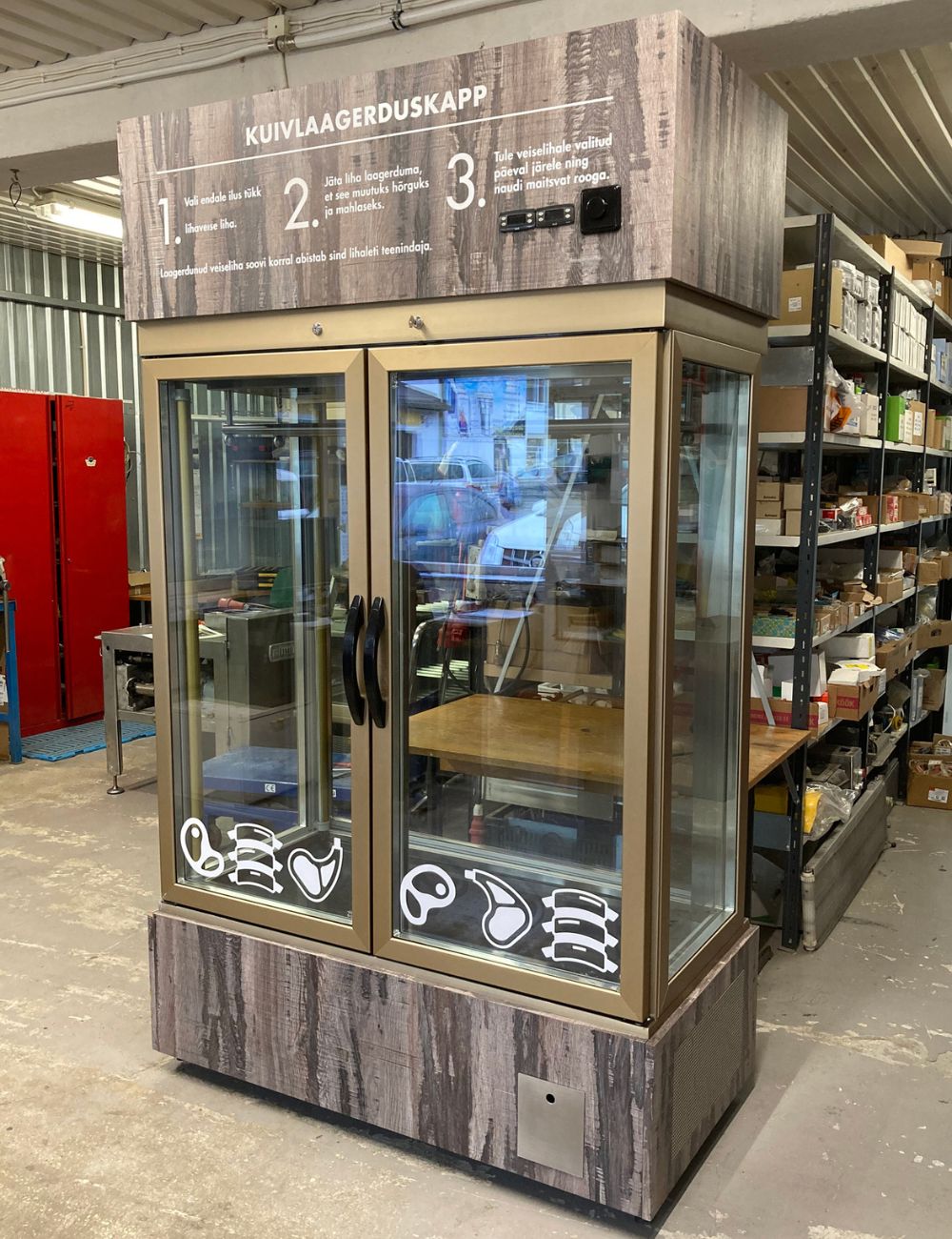 Seda lihade kuivlaagerduskappi saab näha BBQ Entertainment OÜ müügisalongis Vägeva tee 8, Peetri, Rae vald, E-R 9-17.