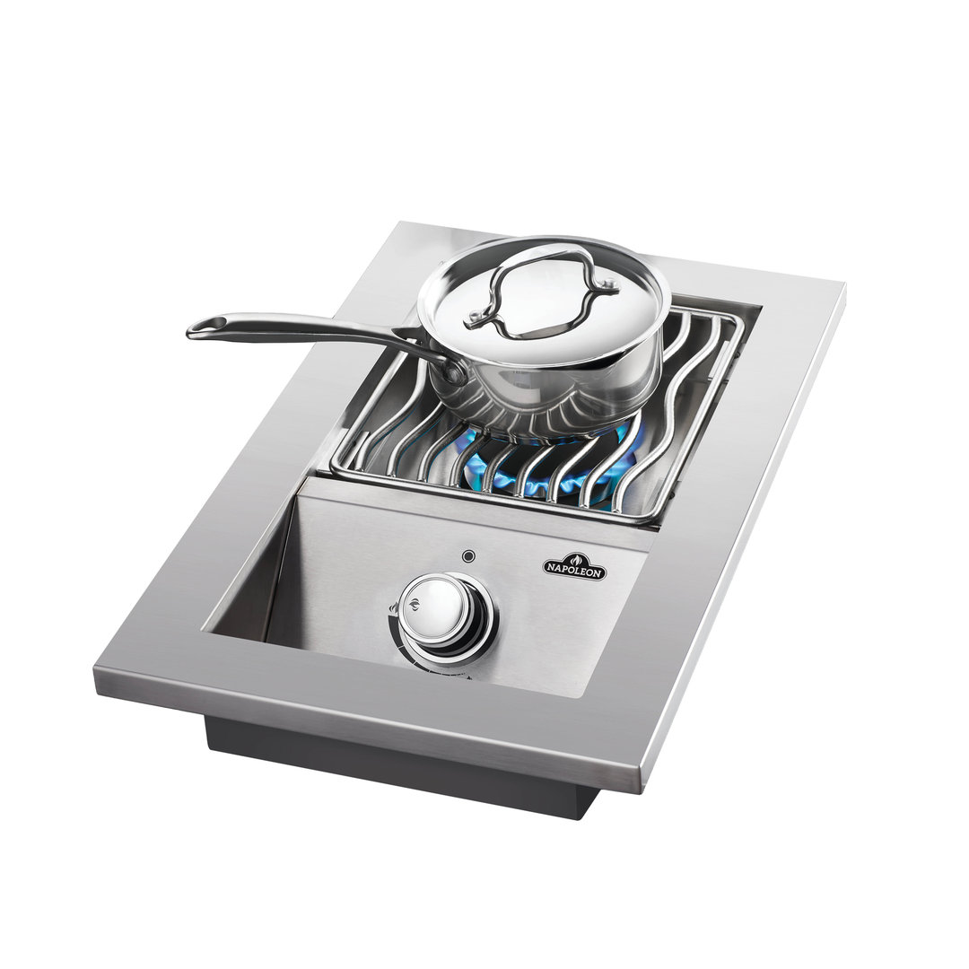 Napoleon 500-seeria sisseehitatav küljepõleti pakub suurepärast lisavõimalust välisköögis. See võimas 3,5 kW roostevabast terasest põletiga küljeseade võimaldab sul valmistada lisandeid, kastmeid, pastat või köögivilju samal ajal, kui pearoog grillil valmib.