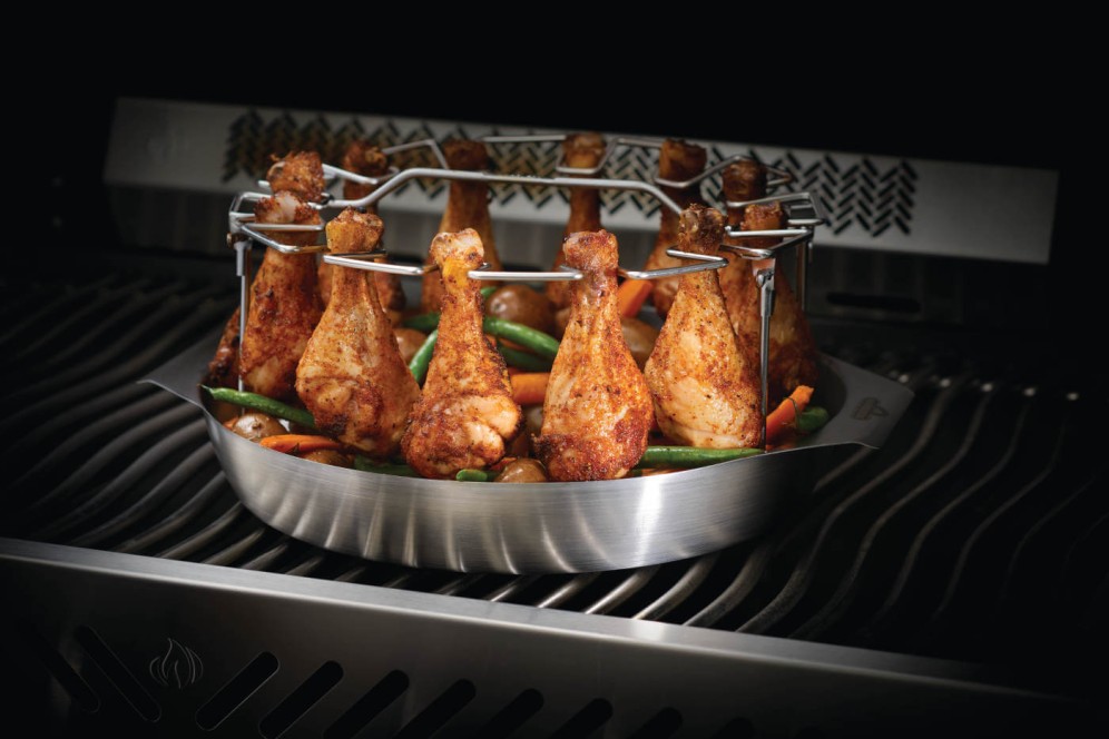 Napoleoni kana poolkoibade röstimise alus on suurepärane toode nii röstimiseks, kui serveerimiseks. Aluskaussi saab samaaegselt kasutada näiteks juurviljade küpsetamiseks, milledele allavalguv lihamahl annab suurepärase lisamaitse. Hoiad grilli puhta ka vedelamat moppi kasutades. Koosneb roostevabast aluskausist ja selle sisse asetatavast, kokkukäivast raamist. Röstitavate koibade hulk 12 tk.