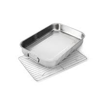 Kvaliteetne roostevabast terasest röstimispann suuremate lihalõikude või terve linnu küpsetamiseks. Sobib kasutamiseks ahjus või grillil.