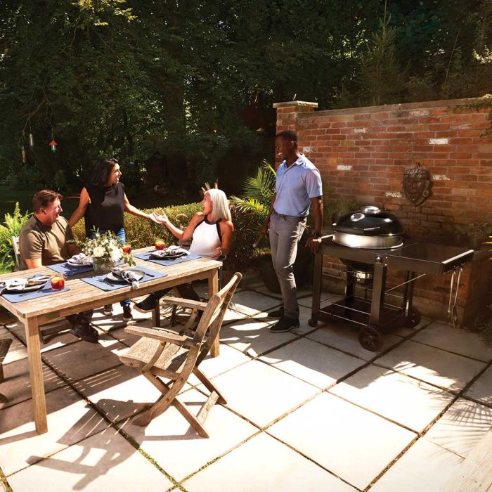 Käru raam on varustatud kokkuvolditava küljelauaga ning nelja rattaga – kaks suurt ja kaks pöörlevat – mis muudavad liikumise lihtsaks nii terrassil kui aias. Rotisserie-komplekti jaoks on integreeritud kõrgendusrõngas ja suletavad avaused.