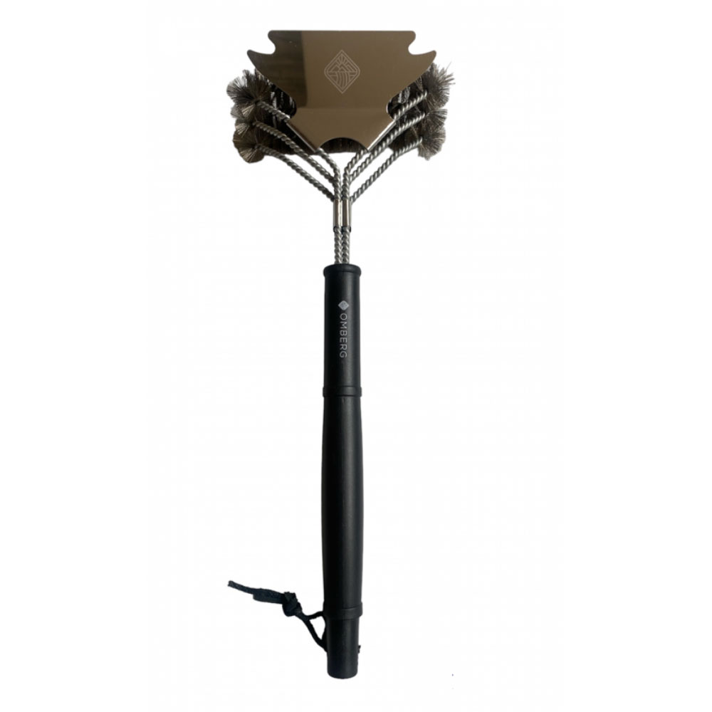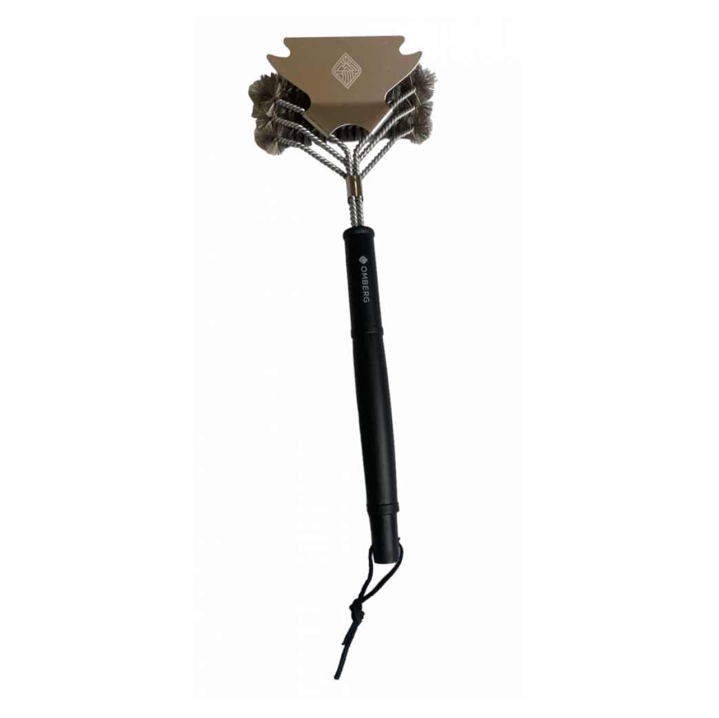 Puhasta grillrestid Ombergi grilliharjaga. Ombergi grilliharjal on suur harjapea kolme sektsiooniga. Harja varustusse kuulub ka kraabits rasva ja toidujääkide eemaldamiseks ning ümarad ääred grillrestide vahelise ala puhastamiseks.