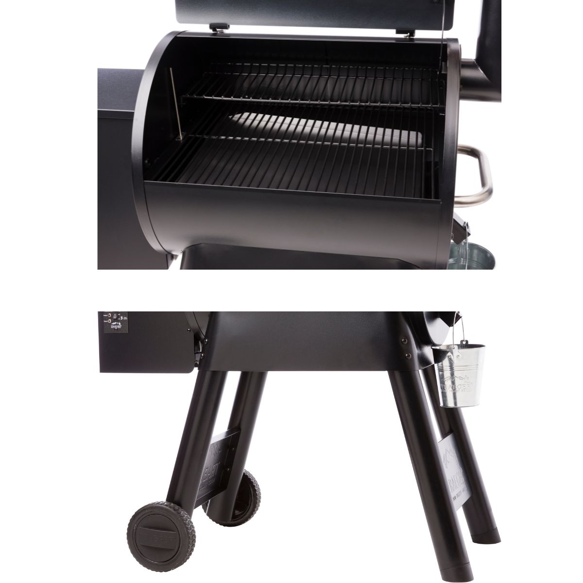 Traegeri 22 tolline kultusgrill kogu oma headuses. Tõeline retromasin. Aastatepikkune müügiperiood on näidanud, et tegu on äärmiselt vastupidava mudeliga. Ülilihtne juhtpaneel, tugev korpus ja lihtne hooldus teevad sellest tõelise kodumasina pikkadeks aastateks. Tünnikujuline küpsetuskamber on valmistatud pulbervärvitud kvaliteetterasest, mis oma kuju tõttu tagab ideaalse soojuse ja suitsu jaotuse kogu grilli ulatuses. Tänu sellele küpsetavad kahel tasandil olevad emailitud terasest restid võrdselt mõlemal tasapinnal. Juhtpaneelilt saab seadistada temperatuuri ja valida grillimise lõpetamiseks kustutusrežiimi. Grilliga kaasas on kaks liha sisetemperatuuri jälgimise sondi. Üks kord “Probe” nupule vajutades, näed esimese sondi temperatuuri, kaks korda vajutades teise sondi temperatuuri. Viimseni timmitud grillitemperatuuri tasakaal ja digitaalne juhtimissüsteem tagavad maitsva lõpptulemuse. Pelletite tühjendusluugi kaudu saad põlenud pelletid kiiresti eemaldada.