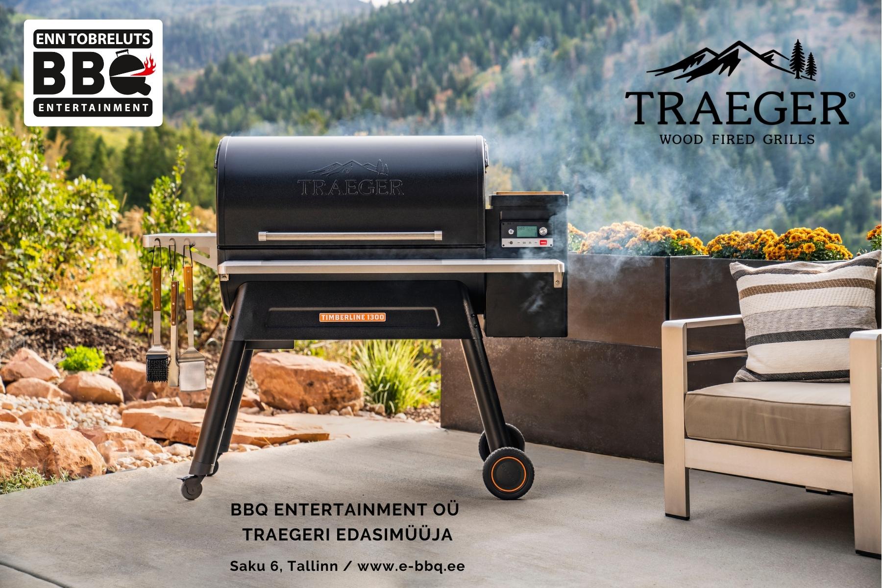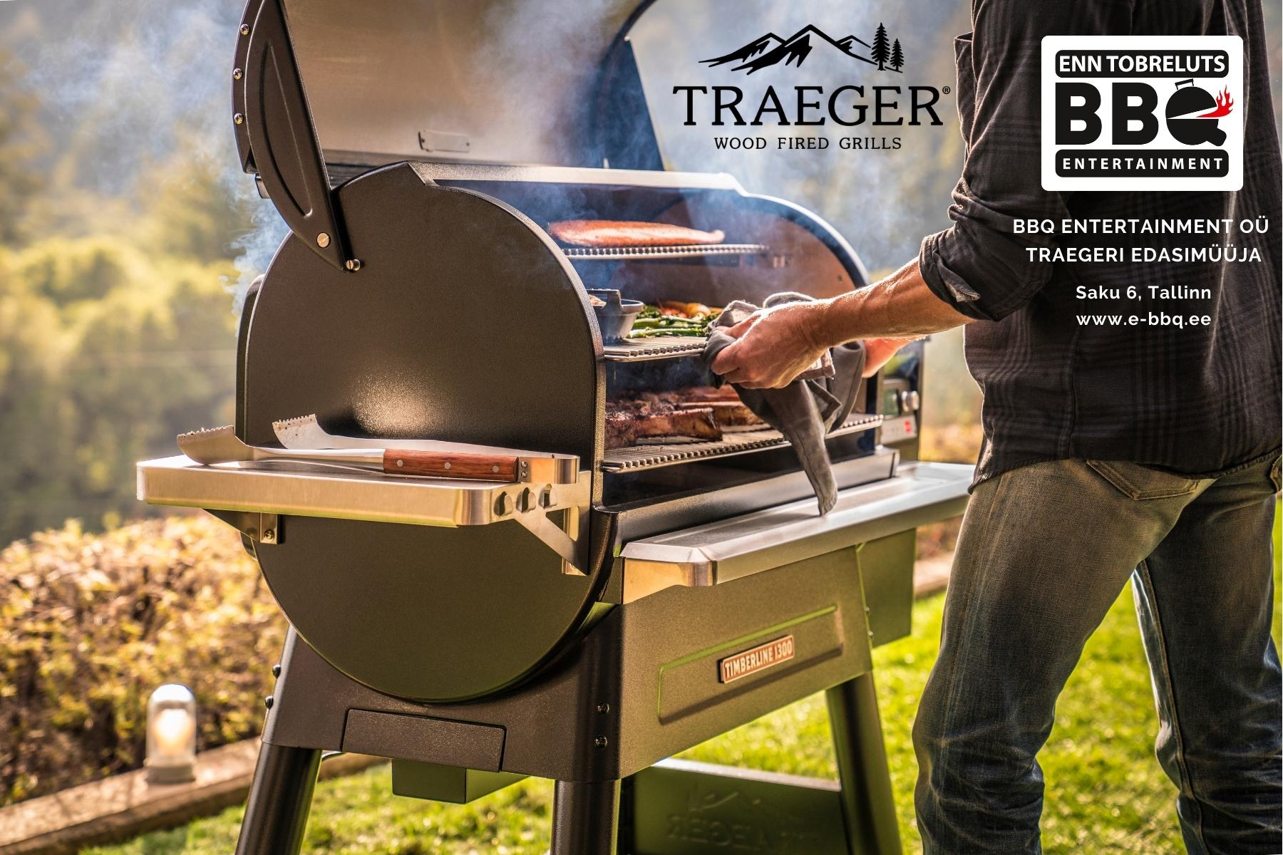 Traeger Timberline 1300 pelletgrill on Tregeri uusim, äpiga juhitav mudel. Nüüdsest võid grillida nii manuaalselt, kui ka tugitoolist! D2 WiFi kontrolleri ja vastavat äppi kasutades saab juhtida suitsu hulka, soojust, seadet sisse ja välja lülitada, seadistada grillimise aega jpms. Temperatuuri saab valida 70°C kuni 260°C (reguleerimise samm 5°C). Grill on varustatud kolmekordse roostevabast terasest restisüsteemiga, mis suurendab oluliselt grillitavate toodete hulka. Grilli, suitsuta, küpseta, hauta, rösti või valmista klassikalist barbequed ja kõike seda naturaalsest puidust graanulitega. Vali sobiv pellet (saadaval kuus erinevat puitu), vala punker täis ja vali äpi retseptidest meeldivaim retsept. Prepareeri grillitav toode vastavalt juhisele ja vajuta lingile “COOK NEW ” ja ülejäänu tehakse sinu eest. Umbes nelja minutiga on pelletid töövalmis ja toidutegemine võib alata. Spiraalajamiga lükatakse pelleteid tulekambrisse ja süüdatakse automaatselt. Spetsiaalne ventilaator hoiab pelletid hõõgvel nagu miniatuurses sepikojas. Grilli kumer kere tagab täiusliku temperatuuri- ja suitsujaotuse kogu grillimispinna ulatuses. Tilkuv rasv ja muud grillimisjäätmed juhitakse äravoolukanalisse ja sealt grilli alaosas olevasse spetsiaalsesse rasvasahtlisse. Laisematele soovitame katta grillimisresti alune pind fooliumiga, nii saate grilli pea-aegu hooldusvabaks.