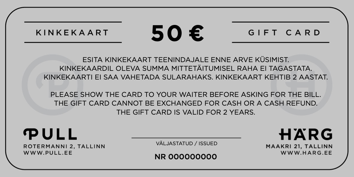 Restoranide PULL ja HÄRG kinkekaart 50€ väärtuses