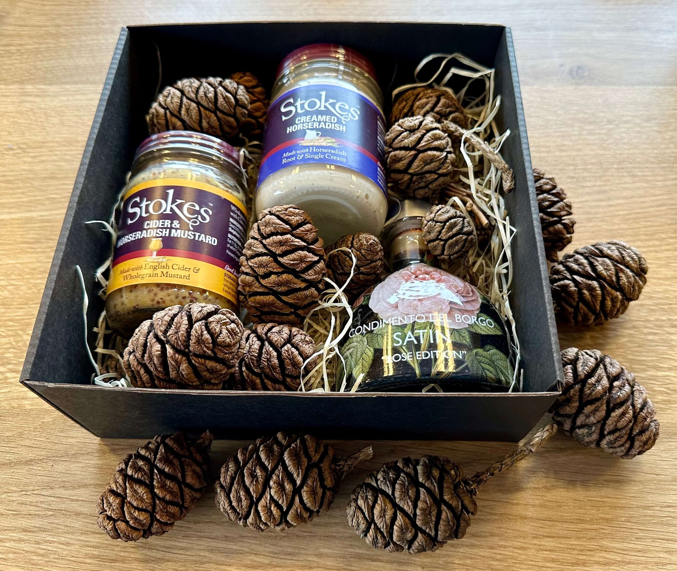 Ilus musta värvi kinkekarp aknaga, kaunistuseks on karbis mõned maailma kõrgeimate puude SEQUOIA kuivatatud hinnalised ja haruldased käbid. Kinkepakk sisaldab: