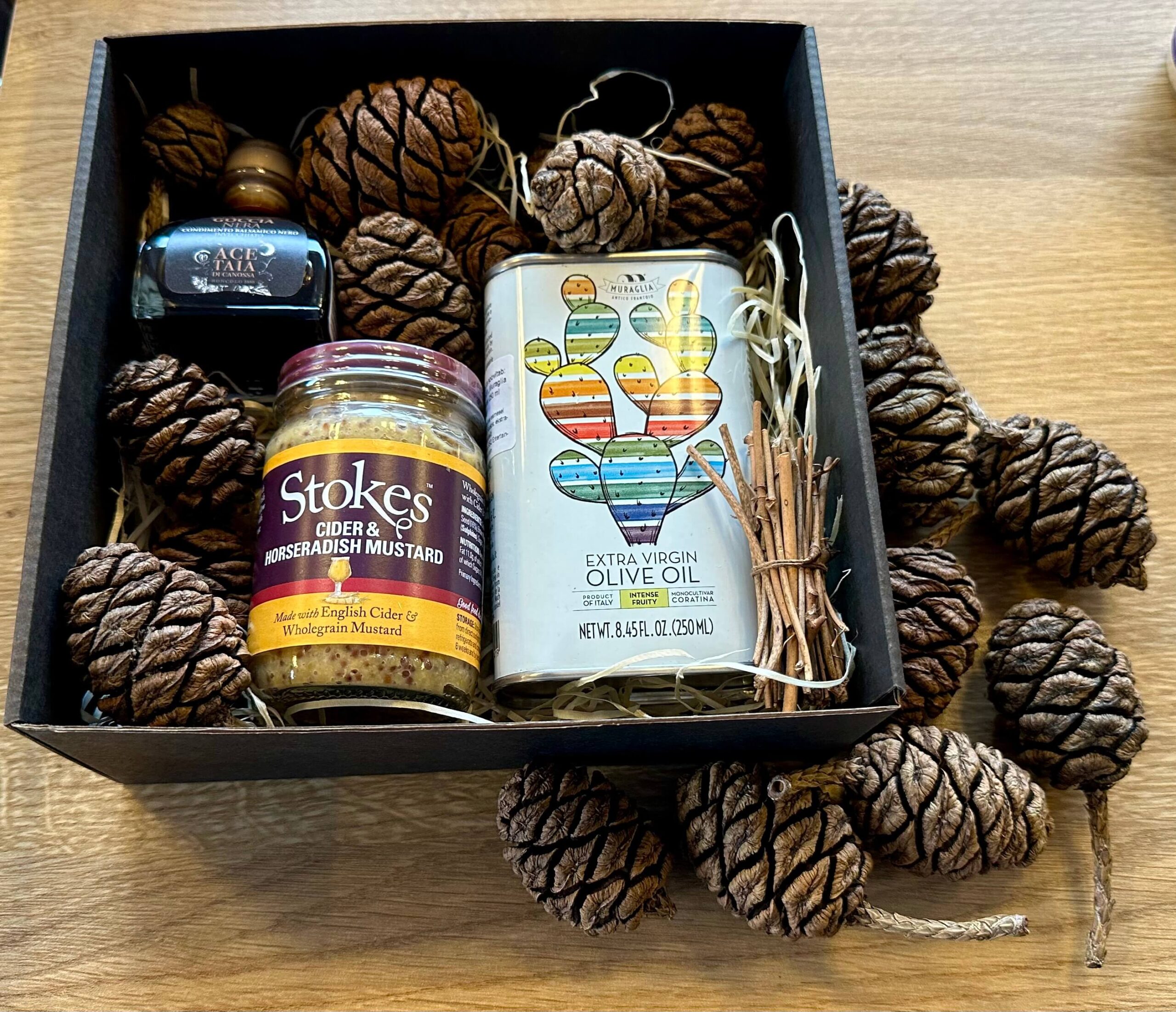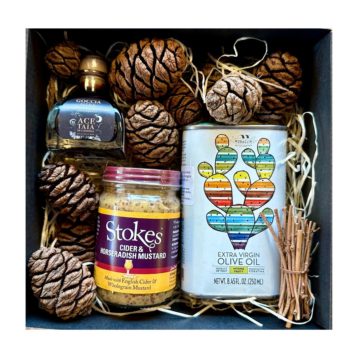 Ilus musta värvi kinkekarp aknaga, kaunistuseks on karbis mõned maailma kõrgeimate puude SEQUOIA kuivatatud hinnalised ja haruldased käbid. Kinkepakk sisaldab: