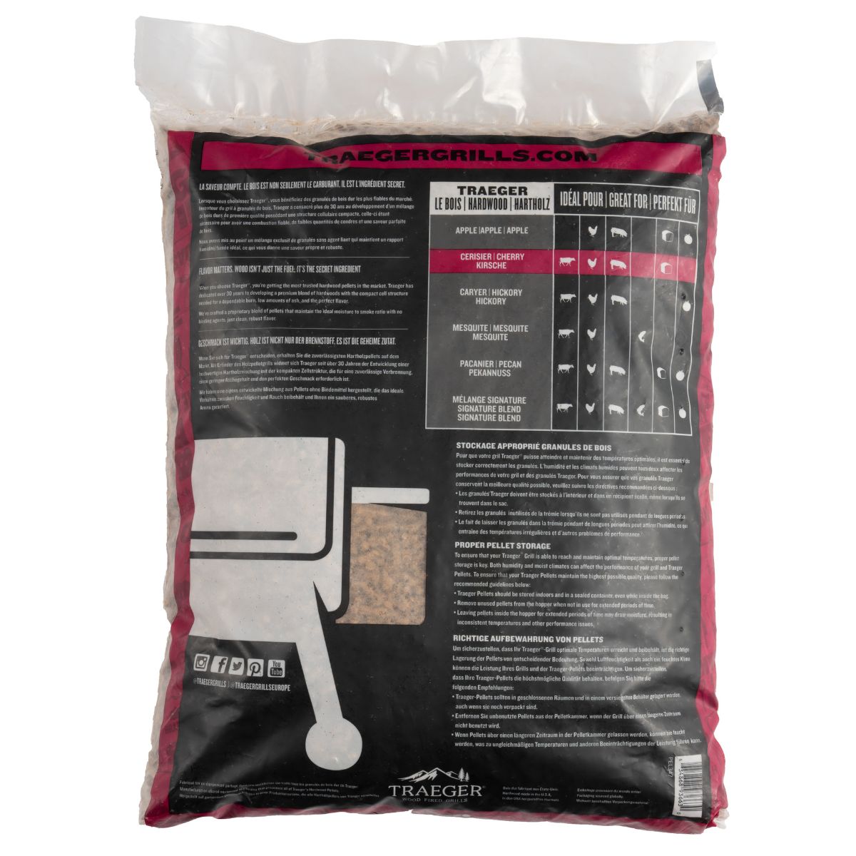 Traegeri kirsipuidupelletid sobivad ideaalselt kala, veise-, sea-, kana-, lambaliha ja köögiviljade jaoks.